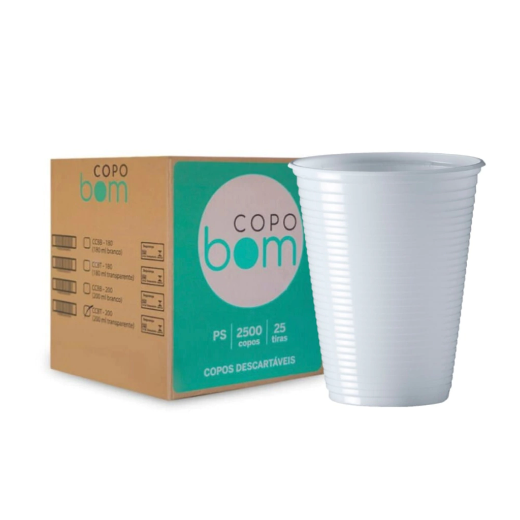CAIXA DE COPOS DESCARTÁVEIS 200ML – BRANCO E TRANSPARENTES – 2500 UNIDADES